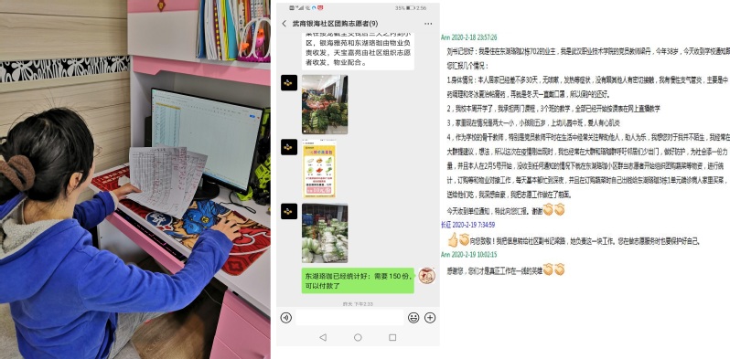 一菜一饭,关乎居民生活。疫情发生以来,电子信息工程学院党员教职工进行“双报到”,为社区居民提供便利,为特殊群体送去温暖。梁丹、曹艳、李雪、黄艳华、蔡静、李婷、黎爱琼、周琦等党员教职工纷纷深入社区,或分发小区团购菜,或帮楼栋空巢老人代购生活物资、药品。他们在各自所在社区发挥着党员先锋模范作用,全力守护社区居民“菜篮子”。