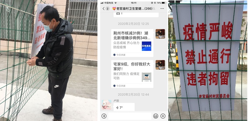 “在学校,我是支部书记,关键时刻,我带头。”57岁的陈昌松斗志昂扬,有着19年党龄的他,意识到这场疫情阻击战将是“一场硬仗”,农村更是疫情防疫工作的主战场之一,不能退、只能赢。1月22日回洪湖市经济开发区老官庙村老家以来,在家隔离期间,陈昌松便在村微信群里做起了“小喇叭”。“我们村是附近几个村里唯一没有确诊和疑似病例的村,所以宣传防护责任更加重大。”隔离期满后,陈昌松便第一时间下到村内小组,进行围栏值守工作。