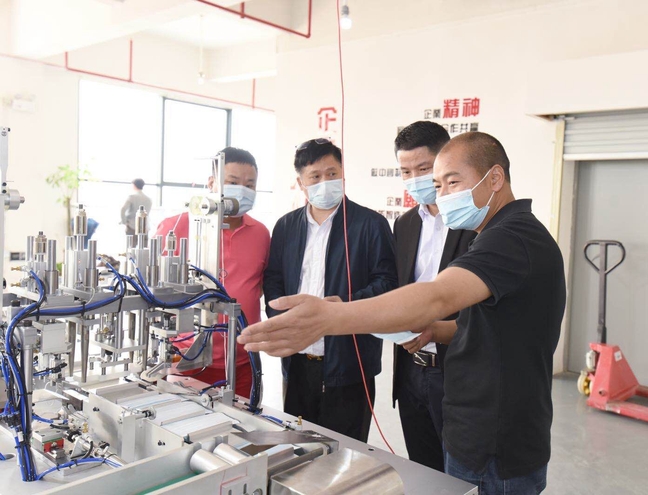 在疫情防控、保产保供的关键期,习近平总书记的讲话激发起同舟共济、共克时艰的磅礴力量。看到这条新闻,一直在思考着如何才能为抗疫出力的卢勇受到鼓舞,远程指挥留守广东中山的同事,着手口罩机的研发。在他和团队的共同努力下,迅速研发出“一拖二”式全自动口罩机,第一批次共生产15台口罩机即被抢购一空,广东叁琦智能装备有限公司也被中山市列为抗疫指定物资设备提供商。