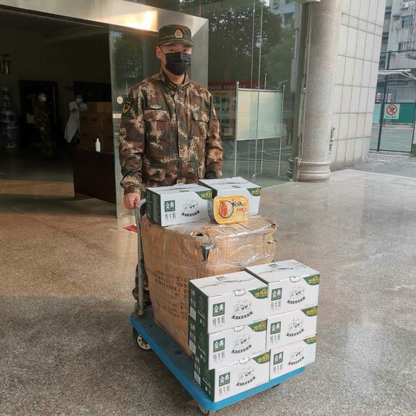 王泽宇每天的志愿服务工作是在随叫随到的“搬运工”、“送货员”角色中不断切换,“有时成箱成箱的医用口罩、防护服需要快速分装上车送往对接的医院,半天搬运下来腿都会发抖,但时间紧急,这些物资又是医护人员的战斗武器,能尽快送往他们手中我感觉特别骄傲!”