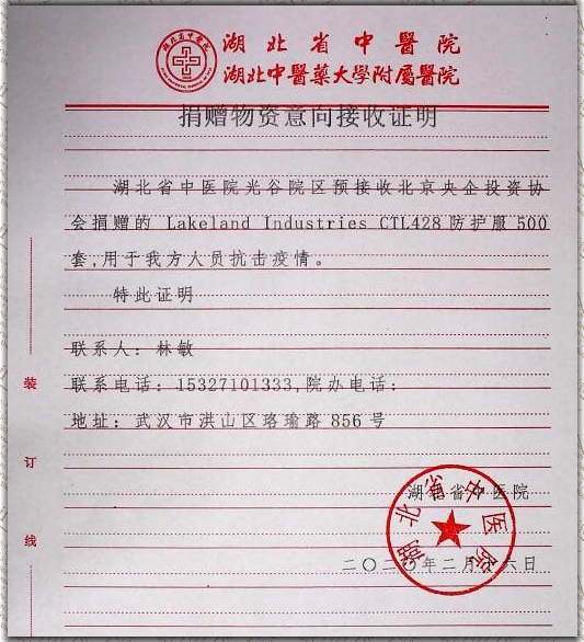 “对医护工作者而言,防护物资就是生命。”同为医护家庭的刘明华老师对刘璋老师筹集物资的心情是感同身受。疫情发生后,刘明华的爱人一直战斗在医护一线,刘明华积极联络身边从事医疗器械、卫生防疫、医药品销售等相关工作的同学和朋友,很快北京央企投资协会第一时间筹集到500套防护服,赠予湖北省中医院光谷院区。