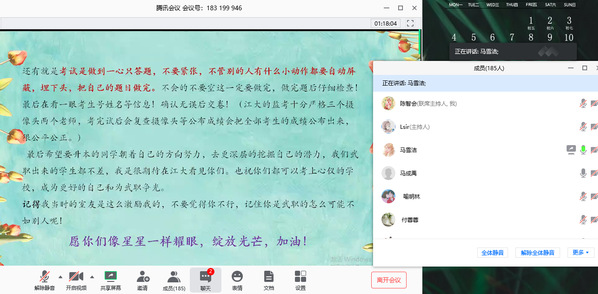 4月12日,周熙、马成禹、马雪洁等三位生物工程学院优秀校友,应邀与学弟学妹相约腾讯会议室,“云支招”如何升学就业,为学弟学妹指点迷津、加油鼓劲。当晚7点,交流会直播间气氛热烈,吸引近190名学子“云集”,大一、大二部分学生也带着专业学习和未来发展的疑惑聆听“取经”。