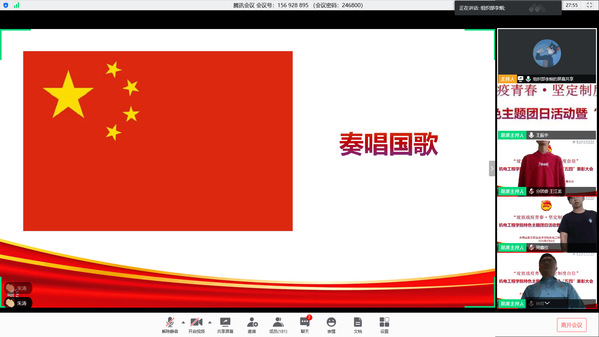上午9点,嘹亮雄壮的国歌声拉开本次活动序幕。钟君立从人民日报文章《在抗疫斗争中感悟制度威力》的个人学习分享、《青春的逆行》微视频中逆流而上青年群体和领学总书记对青年的寄语三个方面,以青年喜闻乐见的方式和青年话语体系,系统阐述了本次战疫中所体现出的中国特色社会主义制度的优越性,他希望广大青年学生坚定理想信念,亮出奋斗底色,勇挑新时代青年一代的责任和担当。