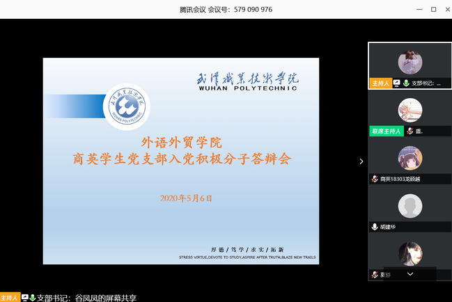 5月6日,外语外贸学院商英学生支部通过“腾讯会议”线上开展发展对象确定工作。党支部书记谷凤凤主持会议,全体支部委员和部分学生入党积极分子参加。