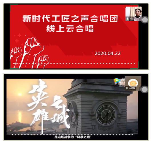 居家隔离季,文艺润身心。4月22日晚6:30,“新时代工匠之声”合唱团闻令而动,迅速反应,利用“腾讯课堂”开展线上“云”合唱教学、“云”拉歌游戏等青春学子喜闻乐见的活动,并通过观看抗疫视频、分享抗疫感动瞬间等形式融入思政元素,引导社团成员增进对中国制度、中国道路的认同感,积极传播正能量,抒发家国情怀。
