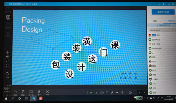 在“如何开展基于线上线下混合式教学的课程建设”讨论中,包装教研室青年教师罗莹作“以学习者为中心,打造混合SPOC课”主题发言。罗莹讲道:“在《包装装潢设计》和《品牌形象设计》课程线上教学设计中,本着‘关注学生个性化成长,以适应学习本质和学生需求’的理念,通过智慧职教平台自建2门SPOC课,将教学资源糅合到直播授课中。鉴于学生线上学习时间过长容易疲劳这一实际,采用线上线下混合、直播和录播相结合的授课方式,精心制作PPT,合理安排理论教学和实操,辅以可视化信息结合动画音频视频表情包,营造轻松学习环境,让学生获得优质教学体验。”