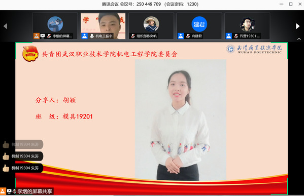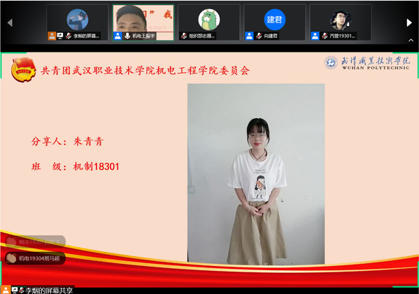 巡讲活动历时90分钟,主讲人的在线分享热情澎湃,句句真情,引发了机电学子的热烈反响。团员青年们纷纷表示,本次线上“百生讲坛”活动主题突出,内容丰富,思想深刻,虽然因疫情影响只能隔“网”相望,但大家在云端相聚,凝聚共识,从抗疫“逆行者”、战“疫”英雄和身边典型的事迹中汲取前进力量,为打赢疫情防控阻击战贡献青春智慧和青春力量。