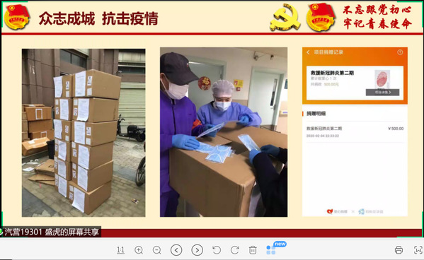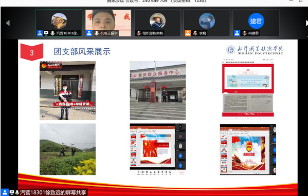 2020年校级五四红旗团支部汽营18301团支部、汽营19301团支部代表分别向与会学子汇报分享了支部建设成果以及战“疫”风采。