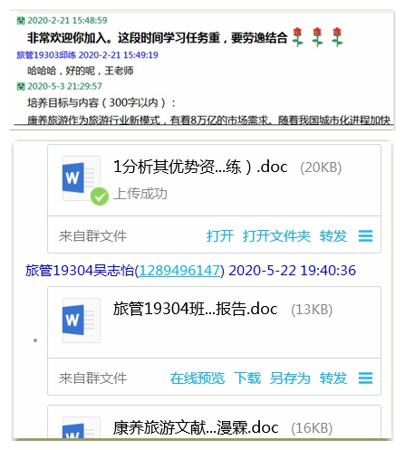 康养旅游英才项目从今年寒假开始进入实践调研阶段,原本计划在假期开展问卷调查、访谈研究、景区实地调研,却因为突如其来的疫情暂时搁置。疫情阻挡了外出的脚步,却阻挡不了师生研究的热情。疫情期间项目组通过智慧职教平台学习、导师线上指导、一对一交流、作业点评等多种形式来开展学习活动,学生们从听中学、写中思、做中悟,确保“停课不停学,科研不断线”。