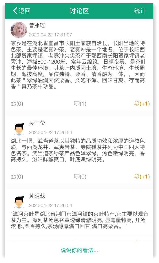 学生在云课堂讨论家乡特色茶