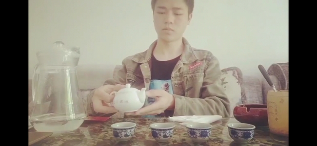 第二阶段为茶艺表演。每组学生围绕选定的家乡茶,完成一套完整的茶艺表演。茶艺表演不仅是冲泡一杯色、香、味俱佳的好茶的过程,更是赏心悦目的艺术享受,是冲泡、服饰、音乐、朗诵、解说的完美组合。在任课老师的精心设计和学生配合下,两个班共15组学生顺利完成表演。学生在居家学习期间,克服疫情带来的诸多困难,四处收集茶具,反复练习,力求呈现出最好的表演效果。