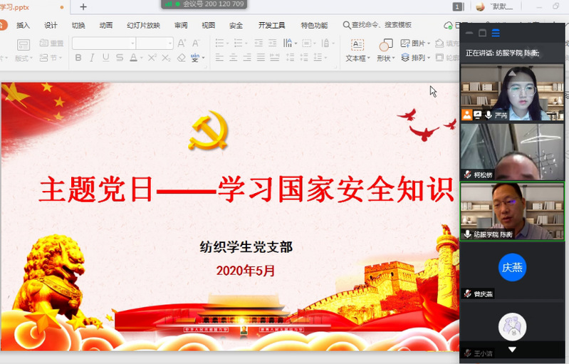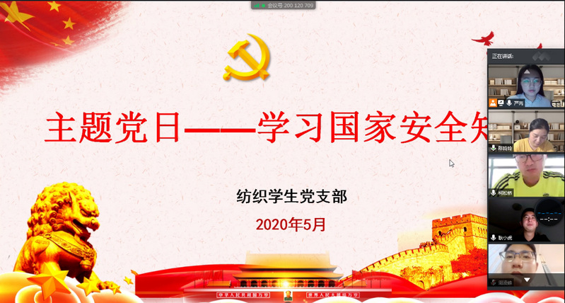 武职网讯(通讯员 严芮)5月29日晚,纺织与服装工程学院纺织学生党支部以腾讯会议方式召开“学习国家安全知识”主题党日活动,全体支部党员20余人通过理论学习、线上知识抢答、主题研讨等方式参加此次教育活动。