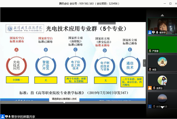 武职网讯(通讯员 金凌云)6月3日晚,学校教务处举办“高职院校课程和专业群资源库建设政策与实务”专题讲座。高等教育出版社高等职业教育出版事业部资源研发部主任曹京华应邀作主题报告,光电子技术应用高水平专业群建设团队主要成员、各二级学院负责人、骨干教师共210余人汇聚腾讯会议平台听专家报告。讲座由教务处处长席波主持。