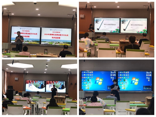 为提升教师综合素质、专业化水平和创新能力,搭建各专业间学习与交流的平台,文化与传媒学院积极响应学校号召,组织教师队伍职业能力竞赛。在教师自荐和教研室推荐下,在教师教学能力比赛和说专业比赛两个赛项中,分别有4支队伍参加角逐,并于6月4日下午完成选拔赛。