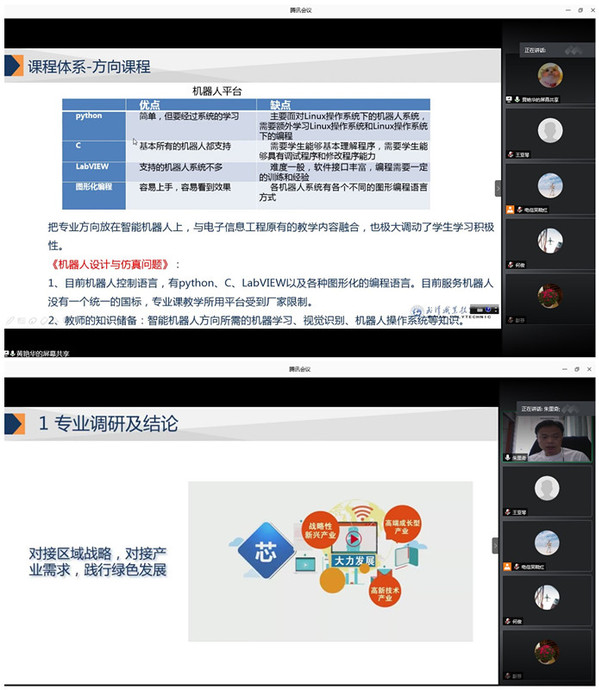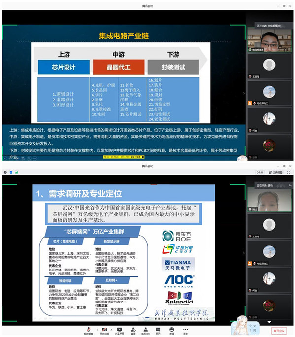 武职网讯(通讯员 王亚琴 朱里奇 朱悦坤)6月5日,电子信息工程学院在腾讯会议平台召开光电技术应用专业群人才培养方案论证会,特邀华中科技大学材料科学与工程学院硕士研究生导师、武汉市智能制造协会战略顾问夏卫生,湖北工业大学理学院芯片产业学院教授谭宝华、武汉智能制造协会会长范陈杰、武汉华工激光工程有限责任公司精密事业部总经理刘勇、武汉光迅科技股份有限公司高级工程师何俊等教育界、企业界12位专家线上“会诊”,电子信息工程学院各教研室主任和专业带头人参加会议,论证会由电子信息工程学院院长陈晴主持。
