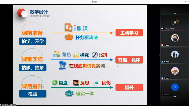 本次比赛旨在加强“双师型”教师队伍建设,推进“三教”改革,提升教师综合素质、专业化水平和创新能力。比赛分为课程技能赛项、说专业(群)技能赛项,商学院13支团队参加课程技能赛项比拼,8支团队参加说专业(群)技能赛项比拼。教务处处长席波、科研处处长王海、商学院院长孟凡中、商学院副院长周蓉、电子信息工程学院光电技术应用教研室主任吴晓红、全国教师教学能力大赛一等奖获得者黄维担任比赛评委。比赛在腾讯会议平台举行,参赛团队通过语音连线、屏幕分享等方式展示作品,商学院教师50余人观摩比赛。