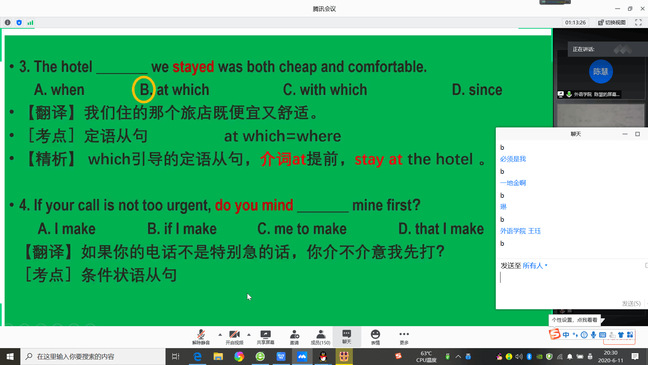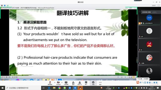 武职网讯(通讯员 刘英)由外语外贸学院公共外语党支部党员教师主讲的“专升本英语考试技巧解析”讲座于6月11日晚如期上线,来自计算机技术与软件工程学院和其他二级学院的150余名“专升本”备考学子通过腾讯会议APP聆听讲座。