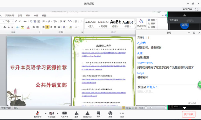 讲座最后,公共外语党支部将收集的历年“专升本英语真题”和辅导资料打包分享给校内“专升本”考生。