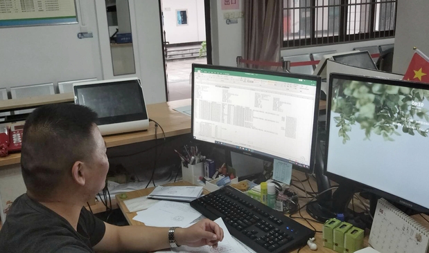 财务处工作人员核准学生住宿费缴纳情况