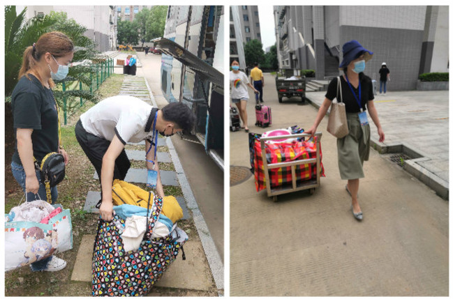 外语外贸学院专职辅导员为毕业生搬运行李物品