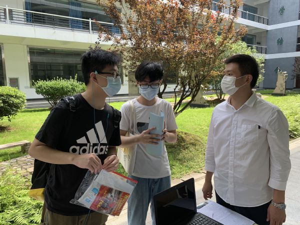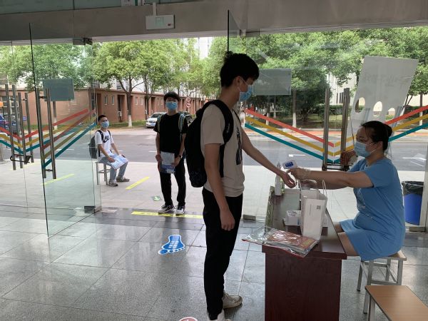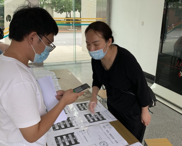 “同学,请测量下体温”“这边登记填写个人信息”“找到所属专业扫码排队”“请在等候区等候老师叫号”…6月26日一早,一批批教师志愿者的“吆喝”声萦绕着机电大楼,不绝于耳。