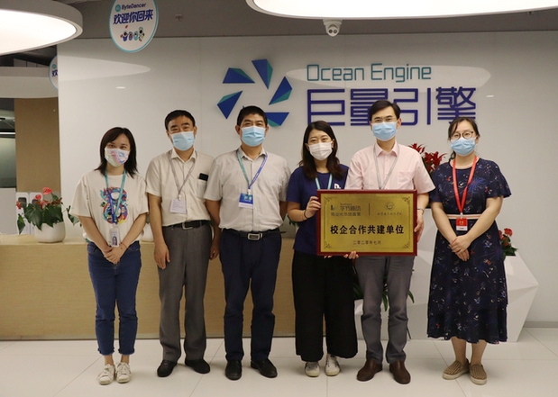 签约后,北京巨量引擎网络技术有限公司授予我校“校企合作共建单位”匾牌。