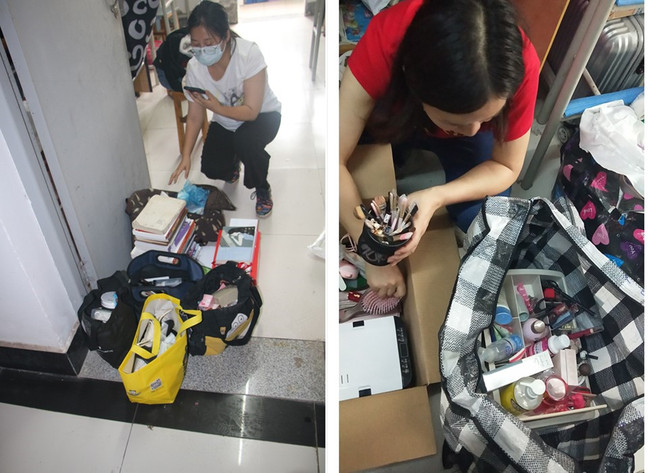 考虑到已离校半年有余的毕业班学生对各自物品的摆放位置有些模糊,老师们通过微信视频连线直播寝室,与毕业生耐心沟通,一件件细心查找,一包包精心整理。