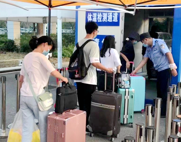 武职网讯(党委宣传部 娄修明 通讯员 朱艳丽 王海勇 摄影 许昌顺 盛虎 严柳 李睿 唐淼涵 胡爱妮 郑夏莲 滕婷婷 胡颖)丹桂飘香时节,学子翩翩归来。2020年8月29日至30日,经历战“疫”洗礼的武职学子满怀憧憬,重返心心念念的校园。