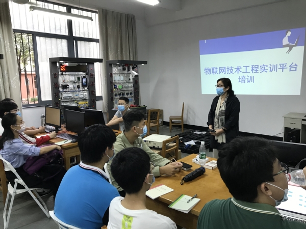 学校成功申报物联网技术项目选拔赛后,按照湖北省人社厅统一部署,积极对标国赛,用开放的心态,秉承为湖北省选拔最优秀选手的指导思想,邀请相关企业技术专家对所有报名选手进行技术培训,并全程对所有选手开放比赛设备和场地,为选手训练创造良好条件;邀请行业企业、高等院校相关知名专家组成专家团,为集训工作保驾护航;指导教师团队有序组织各位选手进行集训,每天给选手布置任务,对任务中的疑点问题进行辅导,对任务完成情况进行检查,抓任务落实。