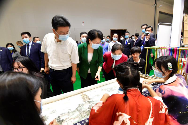 纺织与服装工程学院院长戴冬秀表示,手工刺绣作为我国非物质文化遗产的重要代表,有着独特的历史、艺术和文化价值。近年来,学院积极推进文化传承创新、教学教研教法改革,以“四化工程”为抓手打造高校、非遗传承人、传承学生“三位一体”的创新模式,凸显办学特色。汉绣以楚绣为基础底蕴深厚,特色鲜明,纺织与服装工程学院将与黄春萍汉绣大师工作室深入合作,开办汉绣特色班,致力传承发展中华刺绣文化。