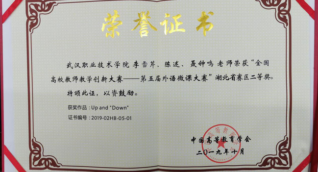 除了指导学生参赛,聂钟鸣也利用课余时间参加了多种教学比赛,屡次为学校赢得荣誉,不断提高自身技能和水平。2019年,他与外语外贸学院教师李雪芹、陈述合作参加全国高校教师教学创新大赛,作品《商务英语写作技巧--Up and Down》获湖北省赛区二等奖;2020年,他与外语外贸学院教师黄小蕊组建教学比赛团队,以《跨境电商之速卖通产品发布》为主题设计实践教学,荣获武汉职业技术学院教师教学能力大赛专业技能赛项二等奖。