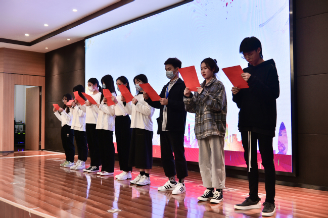 活动间隙,2020级全体新生积极参与知识竞答和互动。下午4时许,全体师生齐唱《没有共产党就没有新中国》,入党启蒙教育在热烈的掌声和欢笑声中结束。