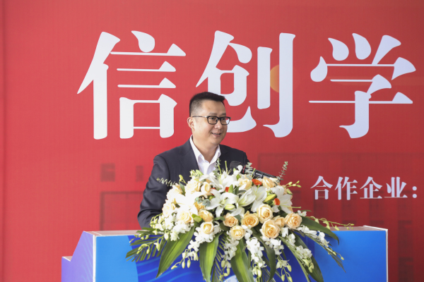 计算机技术与软件工程学院网络技术专业教师江岚作为教师代表发言。他在发言中介绍了信创产业的大背景,并寄语全体信创学院学子要树立远大理想和目标,传承艰苦奋斗的优良作风,培养探索求知的首创精神,德技双修,知行合一,团结互助,厚积薄发,努力成为报效祖国的信创精英。