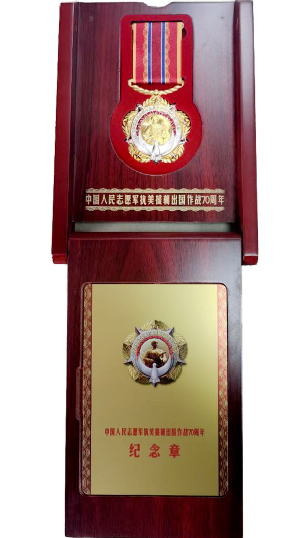 据悉,2020年是中国人民志愿军抗美援朝出国作战70周年,中共中央、国务院、中央军委专门为参加抗美援朝出国作战的、健在的志愿军老战士老同志,出国为抗美援朝战争服务的、健在的医务、铁道、运输、翻译人员,参加停战谈判等工作的人员,民兵、民工,新闻记者、作家、摄影等人员,以及1953年7月停战后至1958年10月志愿军全部撤离朝鲜期间在朝鲜帮助恢复生产建设的、健在的人员制作颁发纪念章。