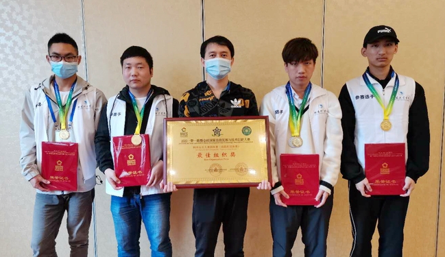获奖师生团队(从左至右):陈坤、周家海、江岚(指导教师)、郁宏焜、陈亮