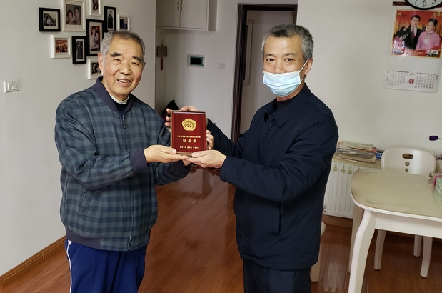 武职网讯(通讯员 张振坤)11月3日,受学校党委委托,离退休党总支赴荆州看望我校退休干部陈建构,带去学校党委的关怀和问侯,并转交抗美援朝纪念章。