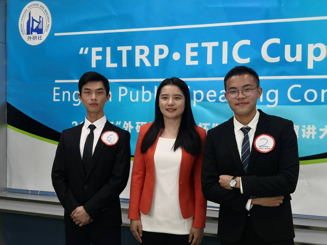 演讲比赛获奖选手合影(从左至右依次为:余沐天、刘思妍、李超)