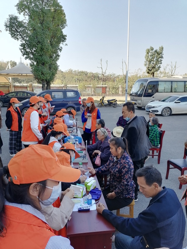 “姑娘,我检查结果怎么样?”“爷爷,您的血糖有点偏高了,要少抽烟少喝酒,多吃新鲜瓜果蔬菜!”“奶奶,这是给您的洗手液和84消毒液,您拿好!平时注意卫生,多洗手!”一群可爱的小橙帽打破了群力村便民服务中心往日的宁静。