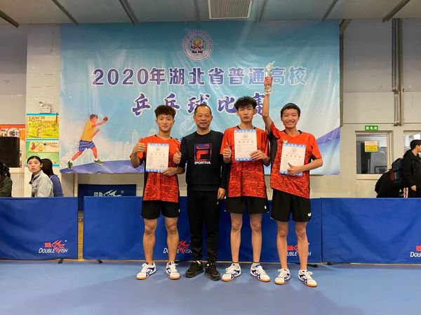 武职网讯(通讯员 周圣平 钟娜 成盼盼)11月15日,2020年湖北省普通高等学校乒乓球赛在武汉体育学院落下帷幕。我校乒乓球代表队在领队胡启权、教练周圣平、钟娜带领下,团结协作,顽强拼搏,蝉联男子丙组团体冠军,并获得单打第二和第五的好成绩。