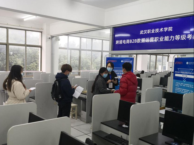 武职网讯(通讯员 黄小蕊 摄影 聂钟鸣)11月22日下午,“1+X”跨境电商B2B数据运营职业技能等级认证考试在武汉职业技术学院外语外贸实训中心举行,外语外贸学院商务英语专业44名学生参加考试。