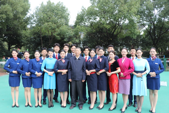 校领导与旅游与航空服务学院关山校区风采展示队员合影