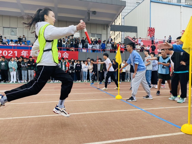 空乘19303班梅梓睿200预赛之后来不及歇息,马上参加50米迎面接力,拼尽全力跑到终点。