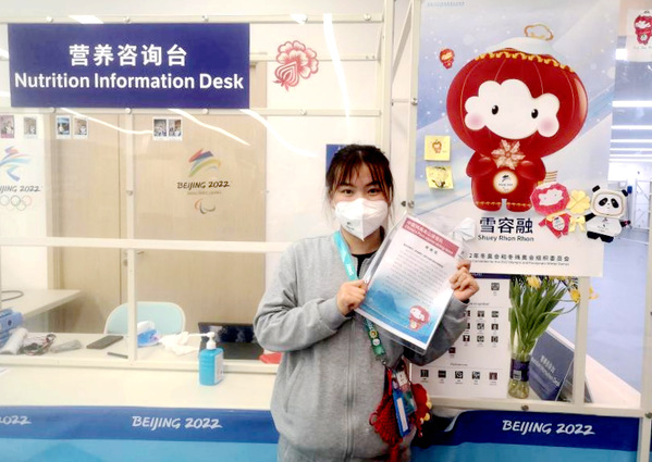 “我的工作是在营养咨询台为国内外运动员、随行工作人员做好餐饮服务。”在校期间,阮文娇担任校团委办公室负责人和班级团支书,有一定志愿服务经验,但这次“双奥”会志愿服务仍然给她带来了不小的挑战。