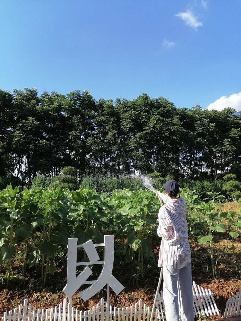 临近暑假,师生们即将离校,向日葵基地的浇水和养护成了一大难事。