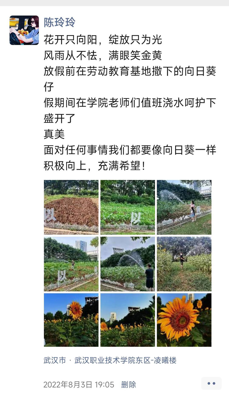 纺织与服装工程学院分党委副书记陈玲玲分享向日葵美景