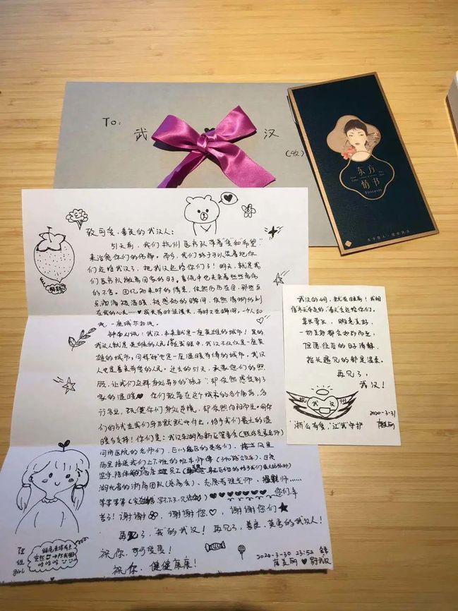 疫情期间,酒店人手紧缺,陈欣坚守工作岗位,一个人干了四个人的活儿。她吃得了苦,还真诚细致地对待客人。医护人员每天下班回来,要排队热饭。细心的陈欣默默记下了每位医护人员的下班时间,提前10分钟给他们热好饭。临走时,白衣天使们亲手“绘制”了30多封感谢信。