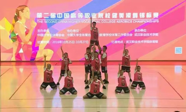 2016年褚思佳代表学校参加第二届中国高等职业院校健美操舞锦标赛获街舞团体赛项一等奖