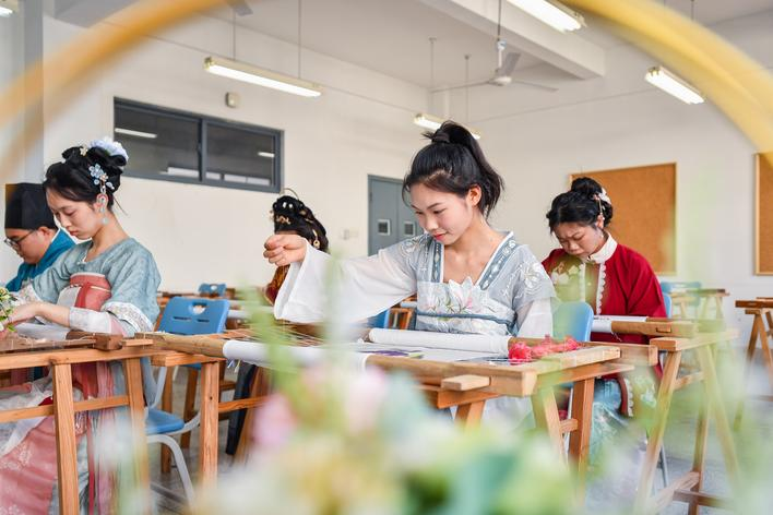 在武汉职业技术学院,加入学生社团——九夏汉文化社,青春与青春相遇,就从一件件汉服开始。