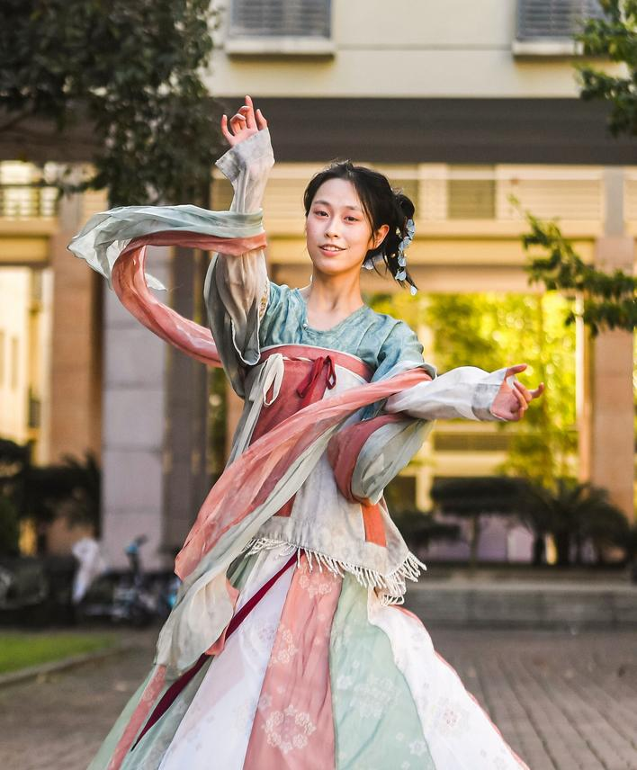 在校园漫步,展示汉服之韵
