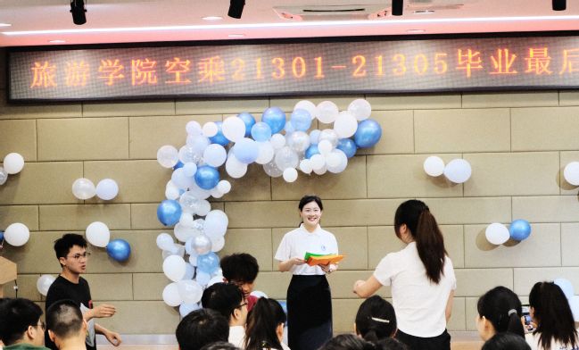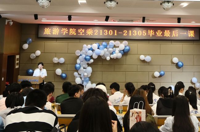 刚刚参加完学校毕业典礼,旅游与航空服务学院2021级空中乘务专业5个班200余名毕业生回到逸云楼,带着对未来的憧憬,怀着对武职校园时光的不舍,听陪伴他们三年的辅导员刘梦老师讲大学生涯的最后一课。